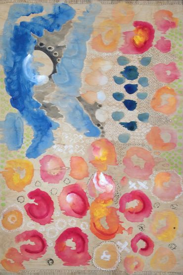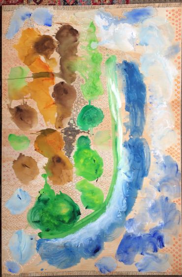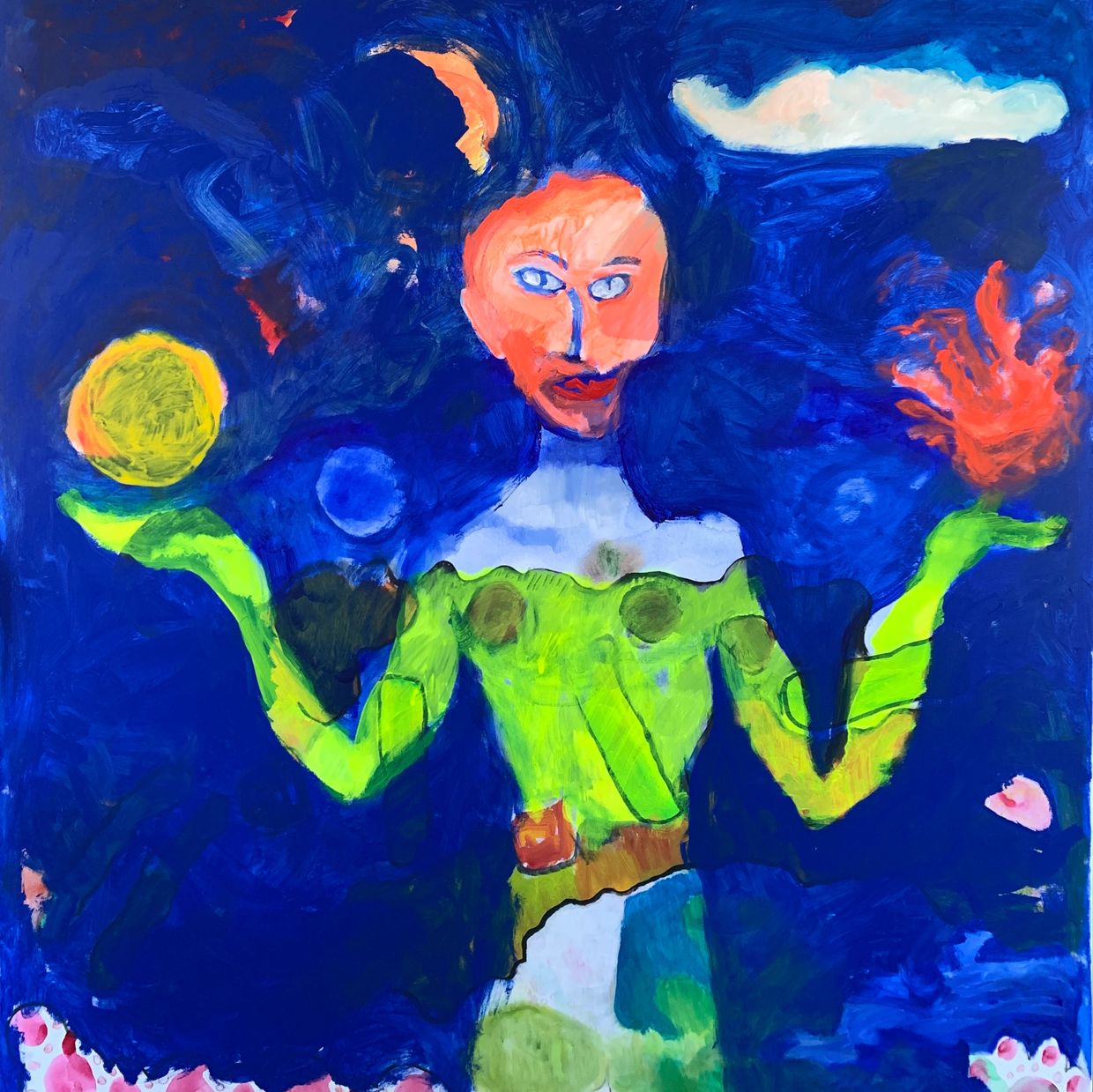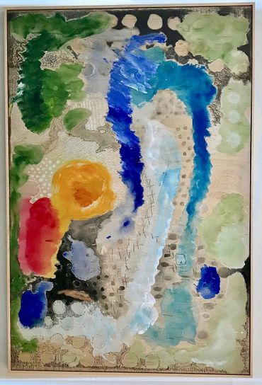 painted spontaneously over what was an awarded landscape 'moloch' a pagan and old testament deity that rains over the natural world where creation forms life ultramarine blue represents creative flow directly from our universe flame the heat of constance the moon our regulator ... artist gallery