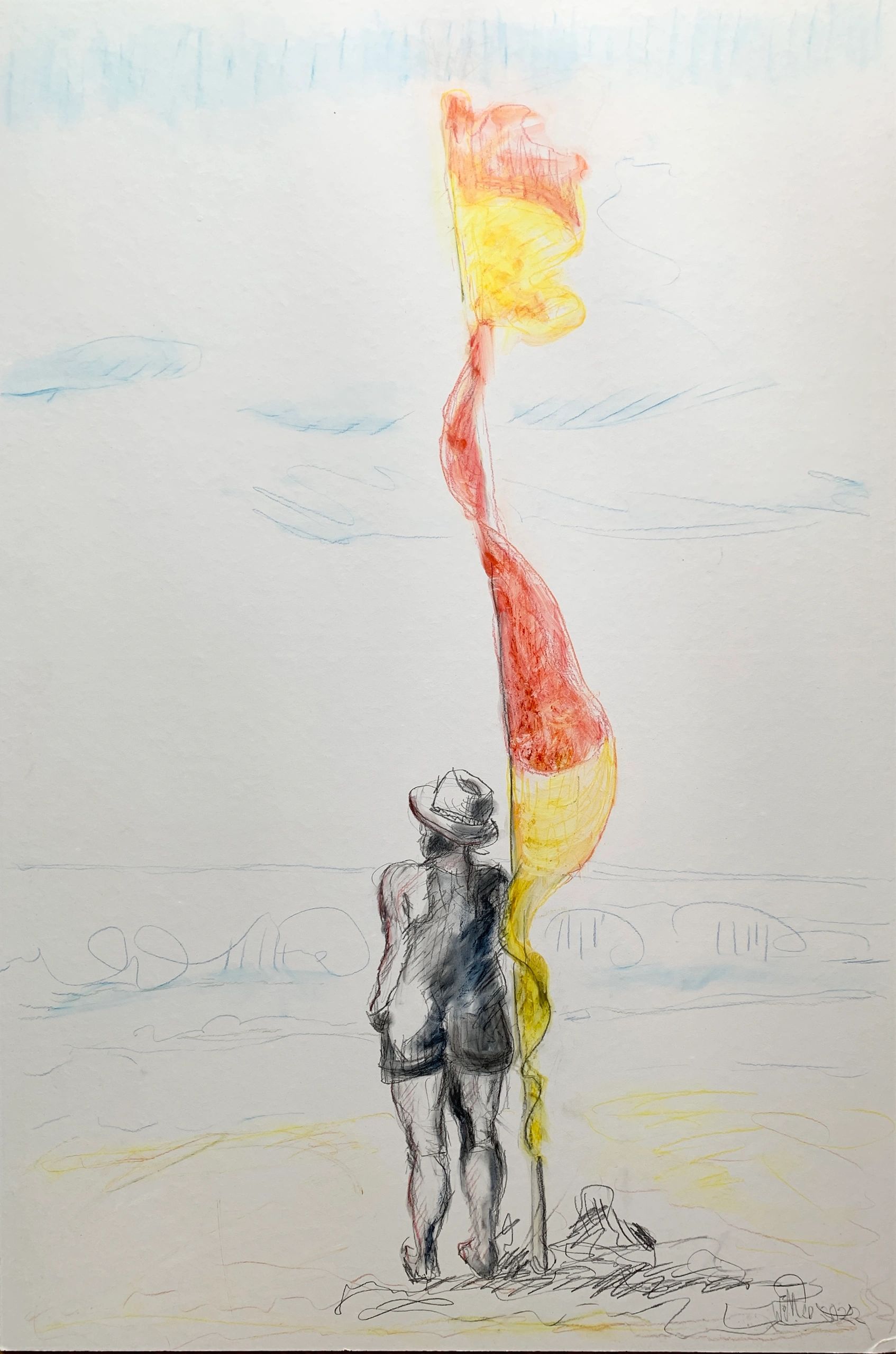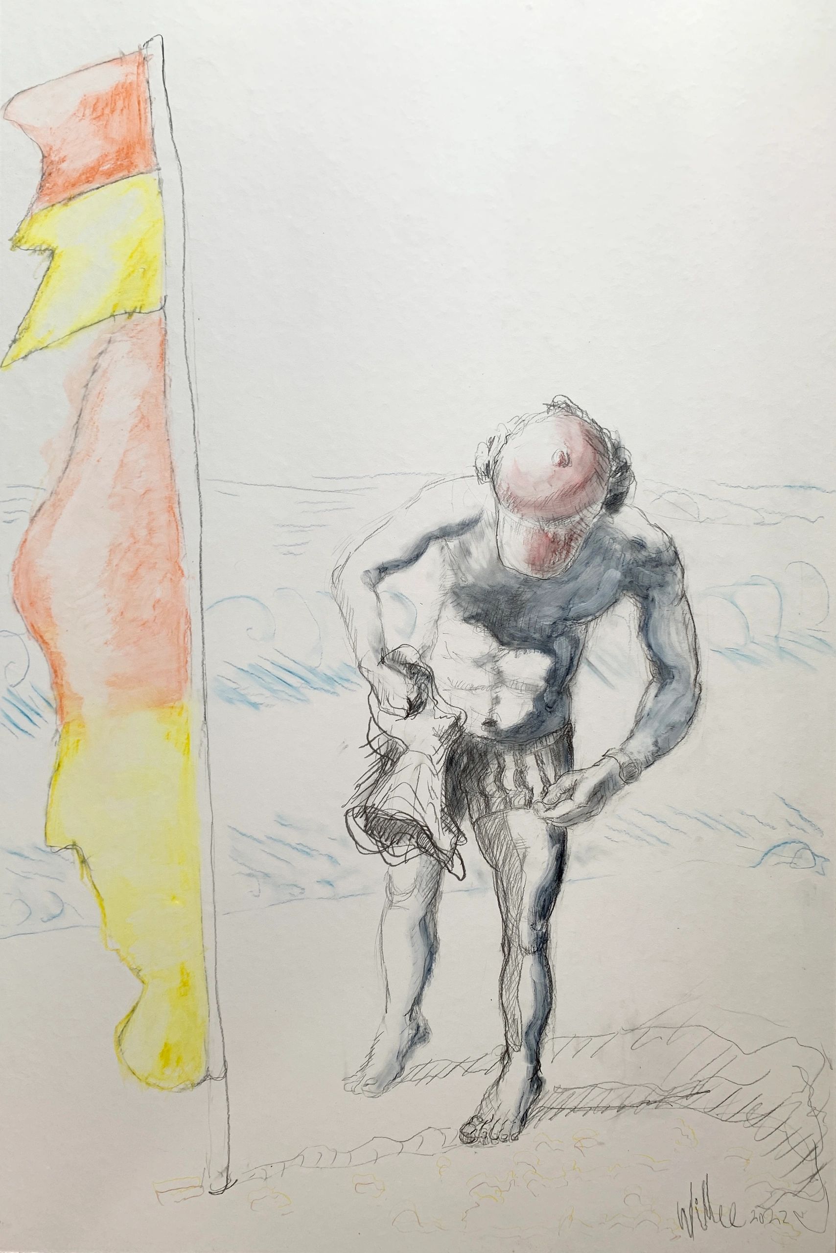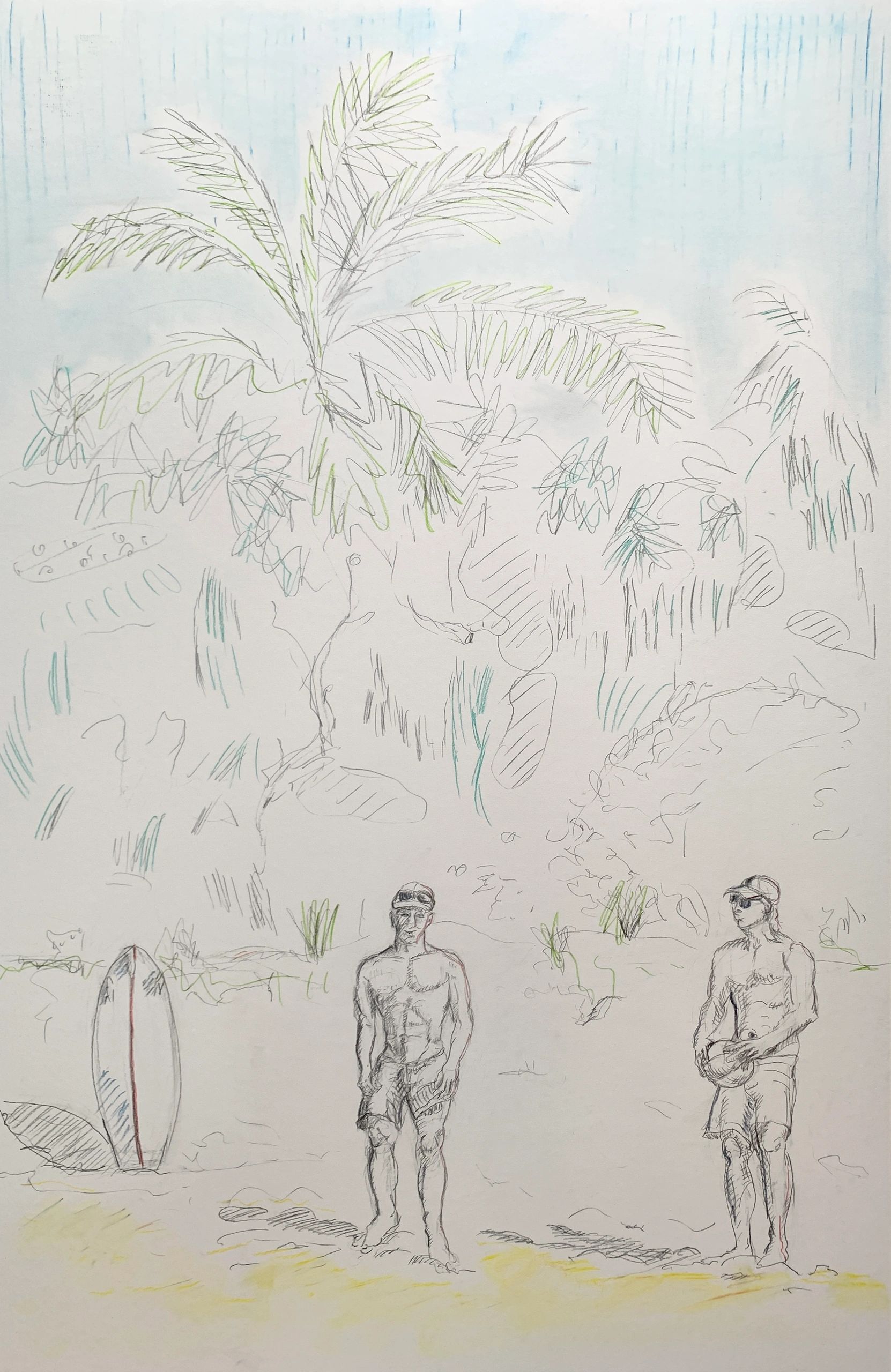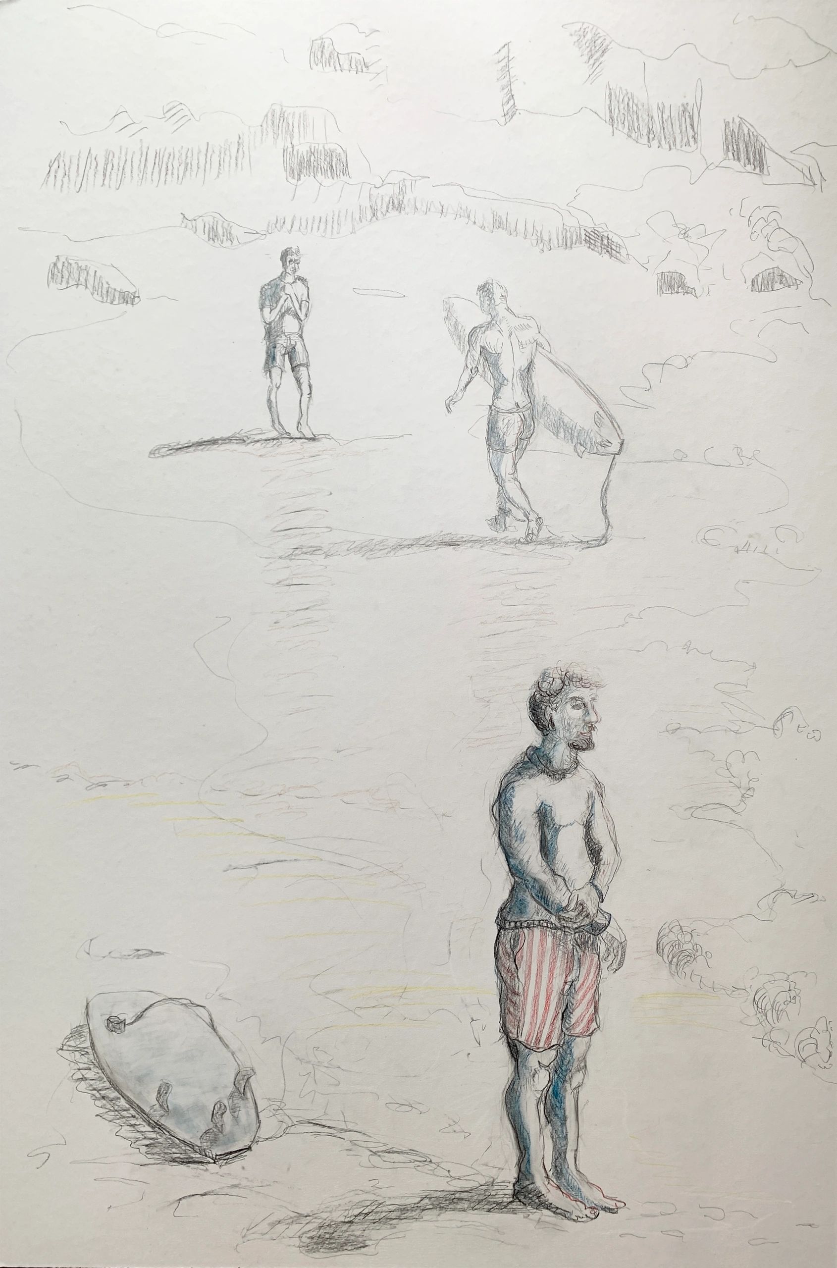 After the Winter Swim Mixed media graphite and ink on yogee paper White wood frame 90hx60w